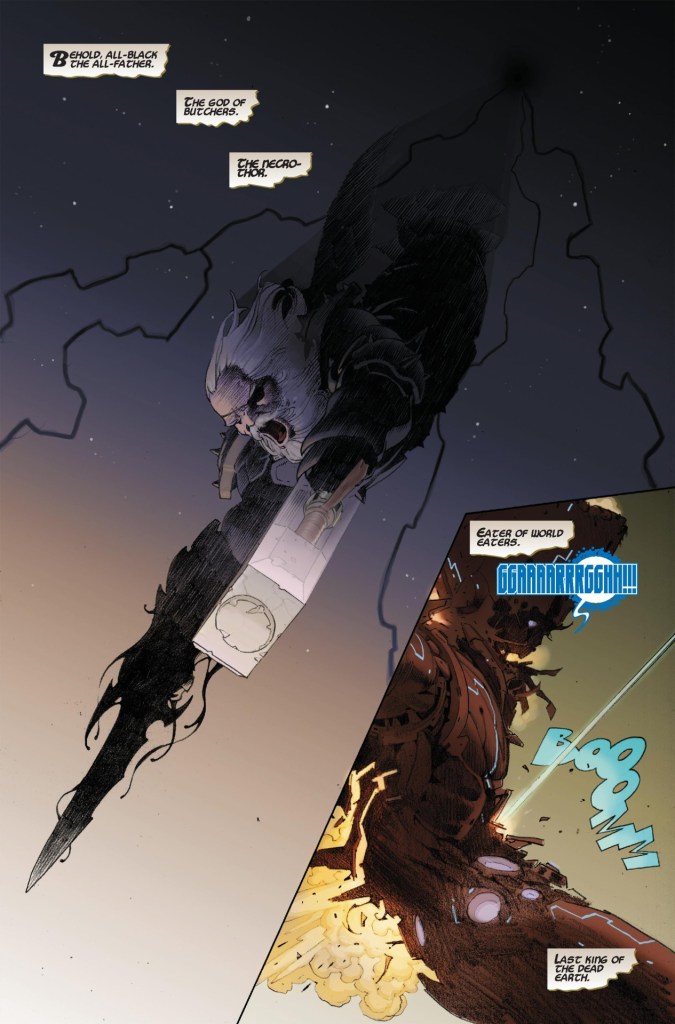 Have you noticed Marvel has a thing about imbuing swords with over the top power? Me either. The Necro Sword (All Black) was the first symbiote ever created by the god Knull. Knull pulled the weapon from his shadow and forged it using the power of a fallen celestial to reap a terrible vengeance against all life. All Black has had a number of owners and has even bonded with beings such as Galactus and Odin. Like other symbiotes it will influence/corrupt the host, following its creators plan to wipe out all life in the universe (emphasis on Celestials). If god slaying is on the agenda the Necro Sword is the way to go since it is responsible for killing millions of gods across the multiverse. With sword in hand the owner possesses superhuman strength to a high degree so high that Gor the God Butcher was able to battle old Thor, current Thor and young Thor all at once and still gained the upper hand. Along with planet shattering strength the wielders are given enhanced speed, durability and reflexes that are at least on a God of Thunder level. Due to the dark nature of its creation and master, the Necro Sword also possess a command over dark energy, able to change its physical form to nearly anything it pleases. Similar to the Twilight Sword this weapon will enhance the natural abilities of the user, when Odin bonded with all black it enhanced his rune lighting so much that when striking Galactus it appeared with a fiendish a blackish purple hue. While the main purpose is the killing of Celestials, gods, and other cosmic entities what makes the sword truly terrifying is that it can bypass the victims immortality and slay them like mortals. Like all symbiotes, All Black is susceptible to fire but has survived being thrown into a star with virtually no damage, making its one weakness a nearly invulnerable one.