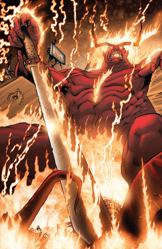 If you blinked in Thor Ragnarok you might have missed the Twilight Sword. First in the weakened grip of a de-powered Surtur, and later being driven into the magical realm Asgard; it receives little attention in the movie. Surtur lugs around what is known as the Sword of Twilight or Sword of Doom. A serious piece of mystical hardware that at one point even houses the infinity stones. Surtur first destroyed the galaxy of the Korbinites (Beta Ray Bill’s home) creating the “burning galaxy” to harness the massive amount of energy needed to forge the Twilight sword. The sword is a conduit for magical energies, increasing the users powers and simultaneously acting as a magical barrier against physical and magical attacks. While in the hands of a champion, the sword has the ability to cut through nearly anything. Not limited to physical objects like metal or rock but also energy/magical barriers and dimensions. Surtur is not the only one to wield the Twilight Sword for terrible purposes. Morgan Le Fay was able to use the sword and her elven magic to completely change reality into a middle ages equivalent with her as the leader. God of tricks Loki even combines his knowledge of science and magic to harness unlimited energy from the sword. The Twilight Sword was created to be coated in the Eternal Flame and used by Surtur to bring about Asgard’s Ragnarok this is a small portion of the many abilities making the wielder a universal powerhouse.
