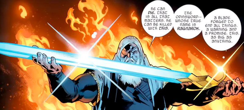 Another item based on a pointy ends that can end you, the Odin Sword is a magical weapon kept under lock and key by the Skyfather Odin. Created from a Golden Nibelung ring it was rumored to be so powerful if unsheathed, “the end of the universe is at hand”. Making its appearance in Journey Into Mystery #117 and later retconned in the “Celestial Saga”. Capable of harnessing cosmic energies primarily drawing on the Odin Force, and cutting through nearly anything including celestial armor. Just to add a background, that powerful magic the Odin Sword uses flows through the Tree of Life and utilizes is one of the most powerful forms of magic in the Marvel universe. Using the power of the Odin Force, Odin is able to access magic as an unlimited source of power, to augment his strength, manipulate matter, alter time and bring the dead back to life. All of this power is being channeled through the sword. Among the strongest weapons available to the Asguardians the might of this weapon allowed Odin to hold his own against a group of Celestials before finally being overcome.