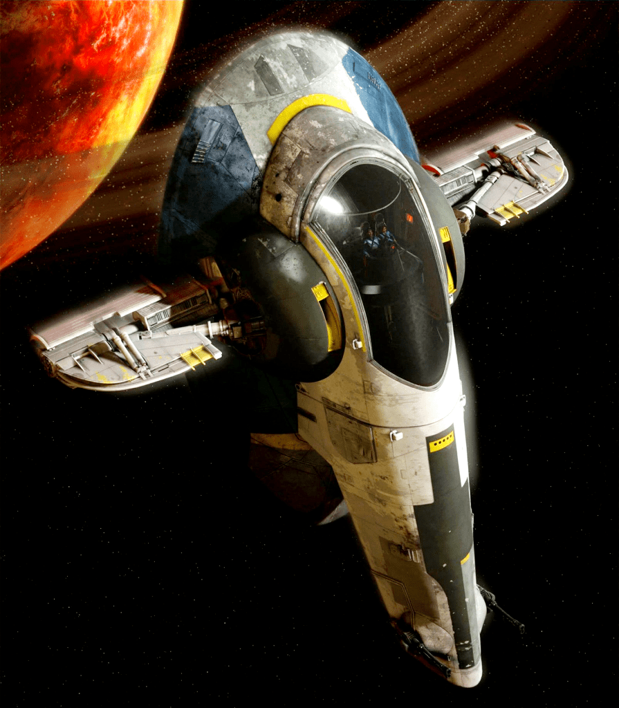 The Firespray-31-Class patrol ship used infamously by Mandalorians Jango and Boba Fett